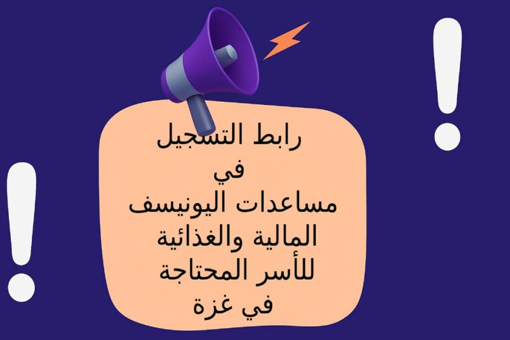 رابط التسجيل في مساعدات اليونيسف المالية والغذائية للأسر المحتاجة في غزة